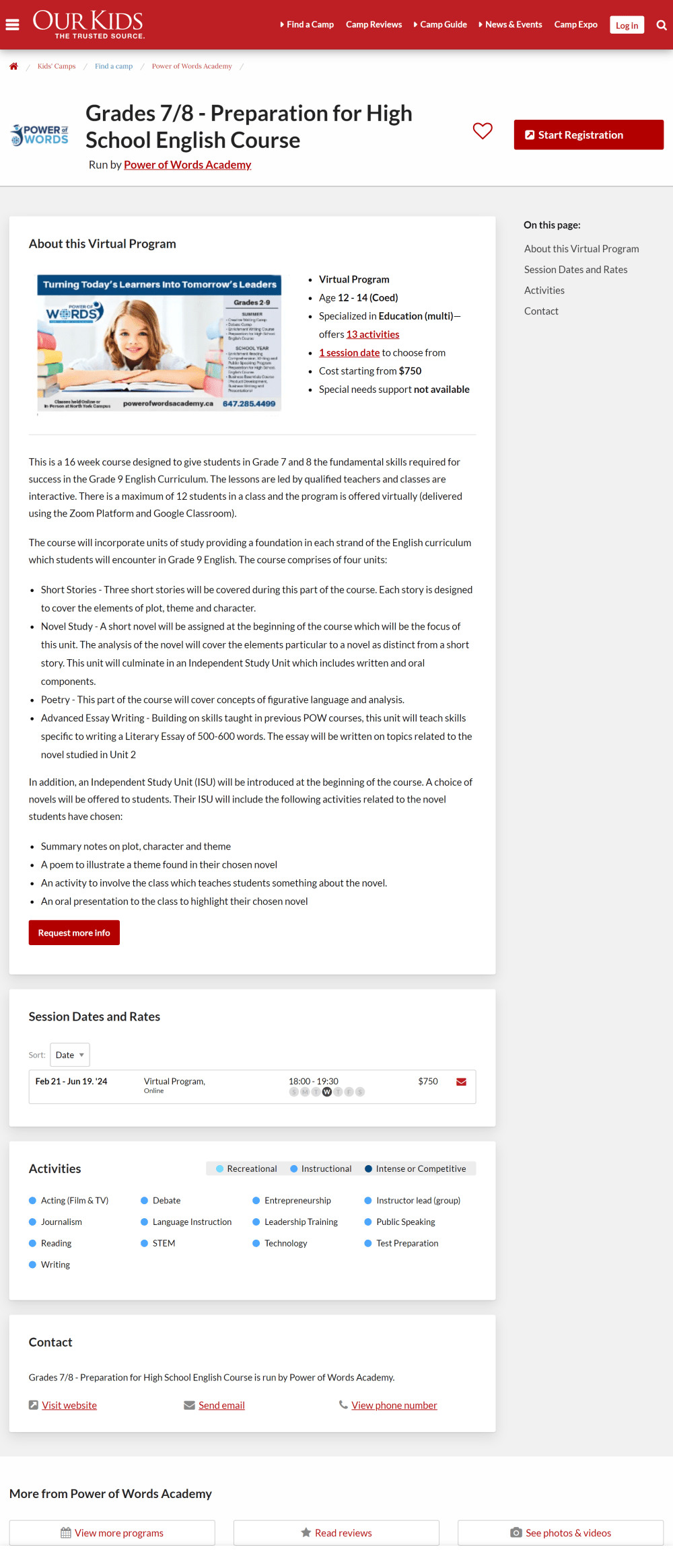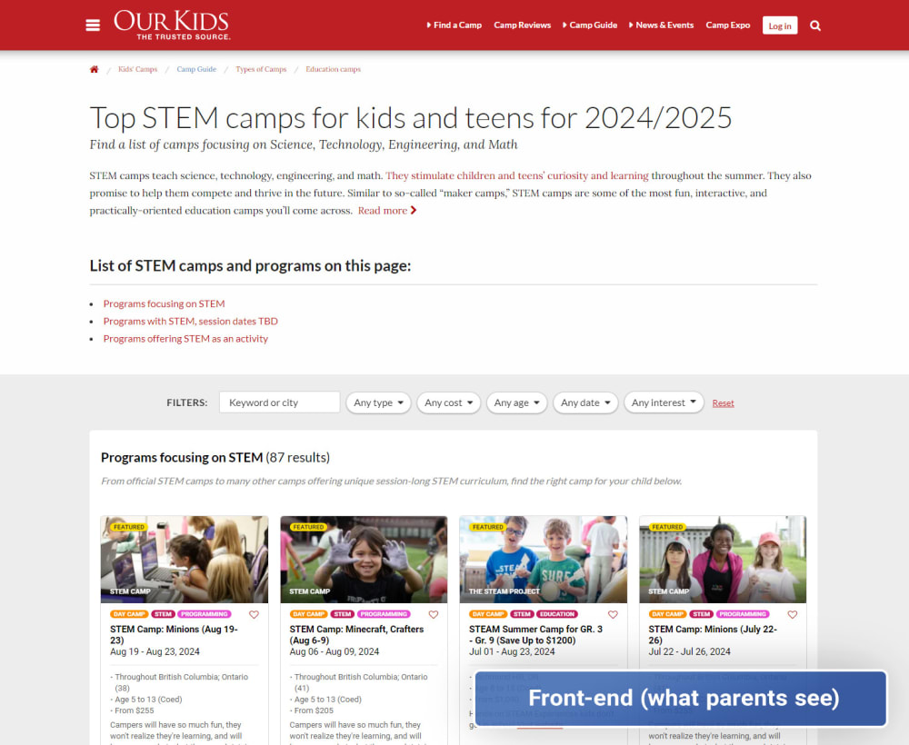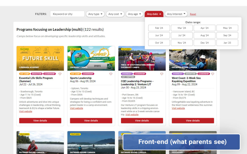 Some families land on an individual program page before they visit your full online profile because your programs are featured on hundreds of pages on our two platforms.