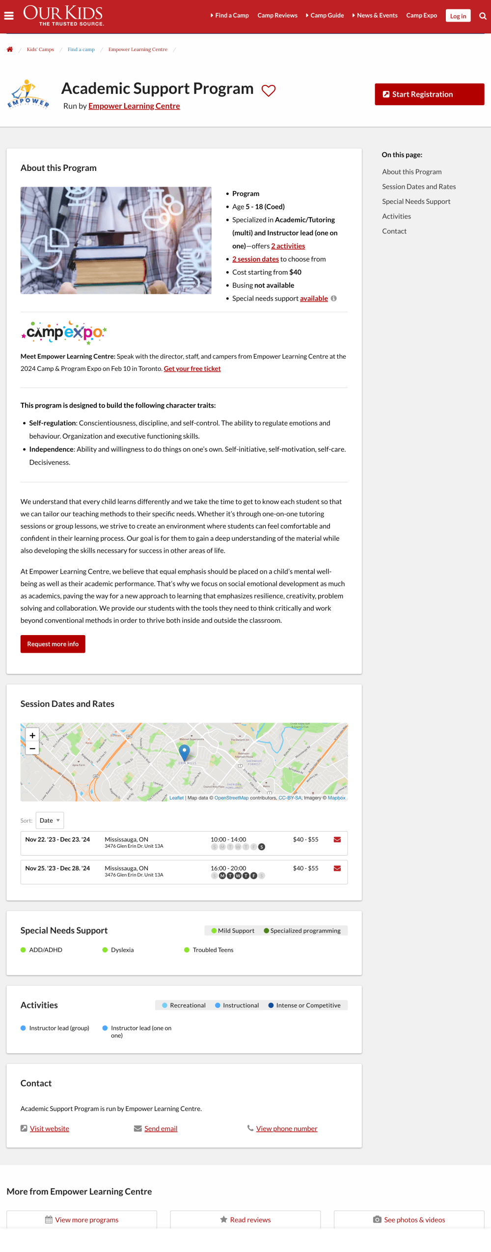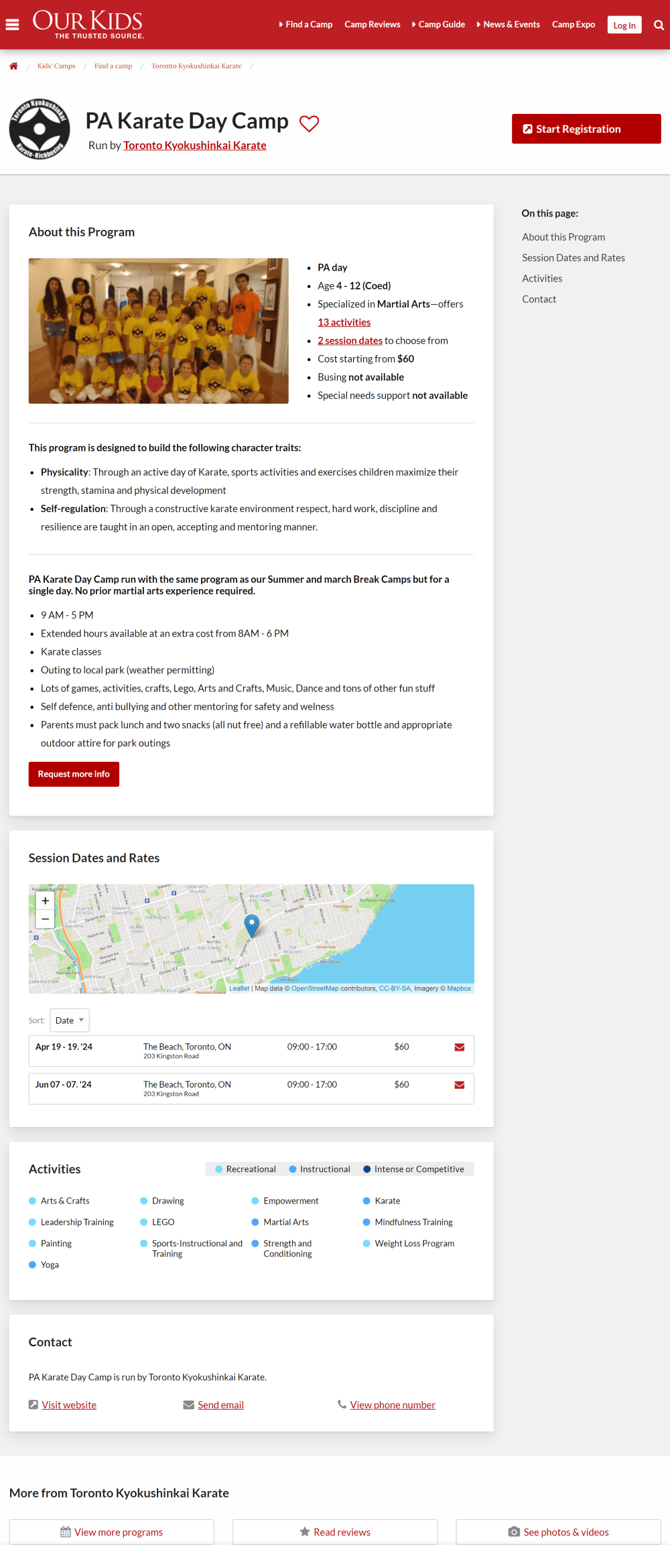 Add as many relevant activities for your program as you can to improve its searchability across OurKids.net and Camps.ca.