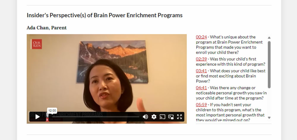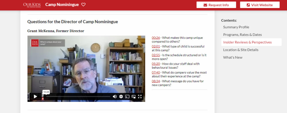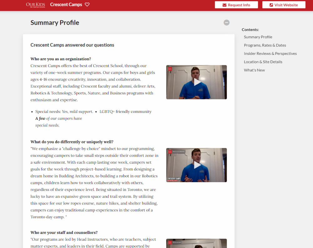 Our Kids videos offer families an inside look into your organization's ethos through participant interviews. These first-hand experiences from past campers/participants and parents enhance your credibility and help families make informed choices.