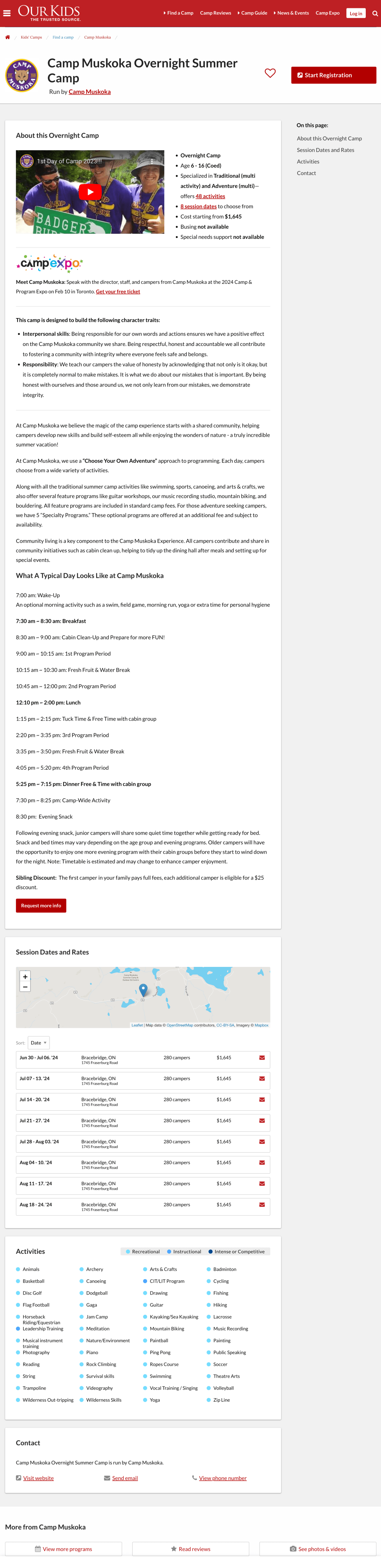 Check out these examples of fully optimized camp/program profiles (of each type).